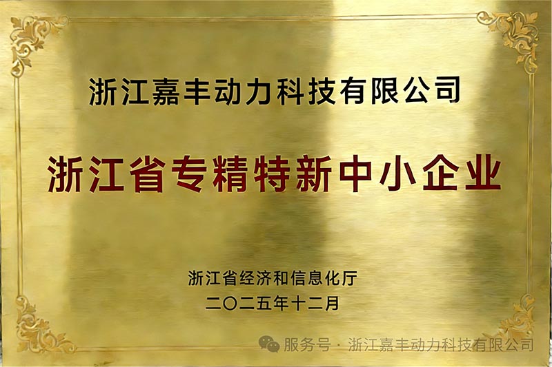 Pred kratkim,Zhejiang Jiafeng Power Technology Co., Ltd.(v nadaljevanju "Jiafeng Power") prejel razburljivo novico. Zahvaljujoč izjemni uspešnosti na področju poklicne specializacije in tehnoloških inovacij je podjetje uspešno prestalo pregled in prejelo naziv "Specializirano, prefinjeno in inovativno" malo in srednje veliko podjetje v provinci Zhejiang.